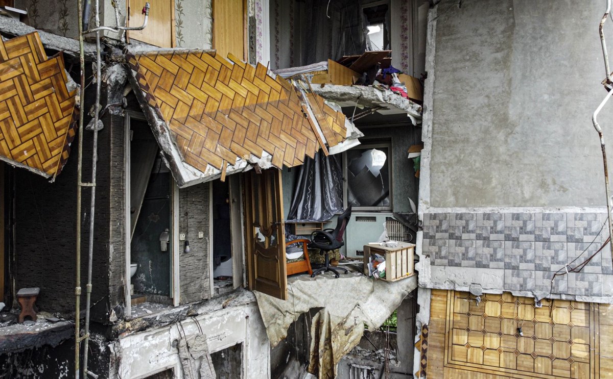 Harkiv'de savaş başladığından bu yana en çok vurulan yerlerden olan Rusya sınırına sadece 40 km uzaklıktaki Kuzey Saltivka-3 mahallesinde ise yıkımın kentin geri kalanına göre çok daha fazla olduğu görülüyor